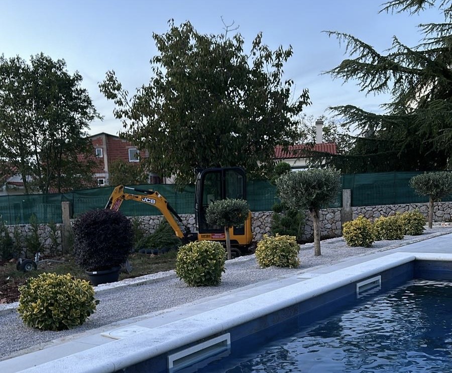 Projektirali smo privatni vrt i posadili biljke: Euonymus, Olea Europea, Cupresssus spirale, Cupressus leylandi, Loropetalum…